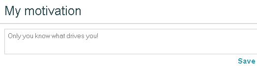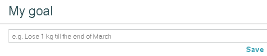 My goal. Here you can input your personal goals or reminders like: eat oatmeal for breakfast, lose 1 kg of weight etc. It is very difficult to change your habits without “smart goals” and monitoring of achieving your goals.