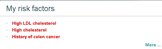 My risk factors: 3 risk factors are shown. Click »More…« to get all your risk factors ordered by importance.
